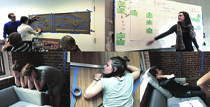At Bluecadet, they work to integrate technology seamlessly into familiar experiences. They have found the best way to achieve this seamlessness is simple: make throw-away prototypes early, often, and continuously. Throughout their process, they act things out, cut out paper, and use a lot of tape–even (and especially) when the final output is going to be high-tech.