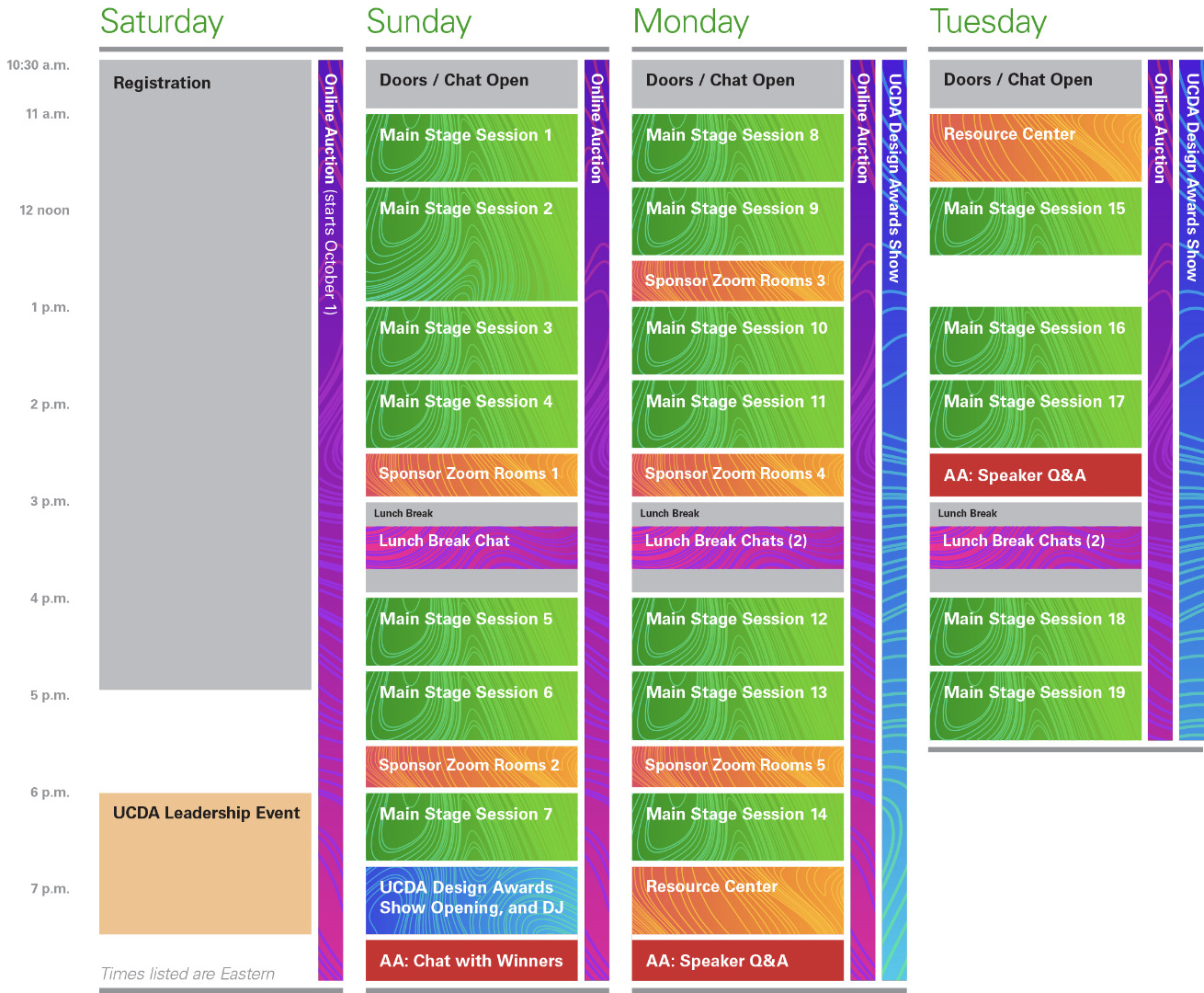 The UCDA Design Awards Show will take place on Sunday, October 11 with the online gallery opening immediate following. For those with winning entries, awards and certificates will be mailed after the conference.