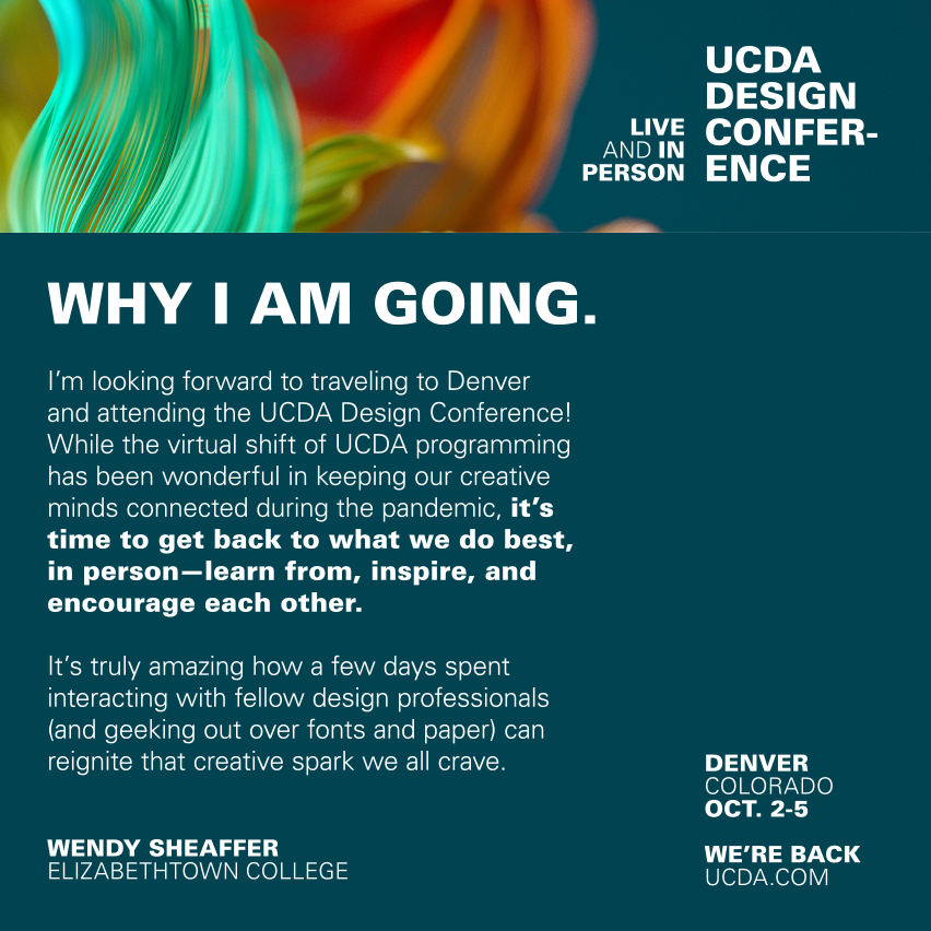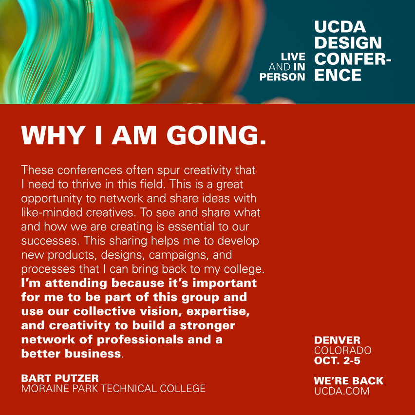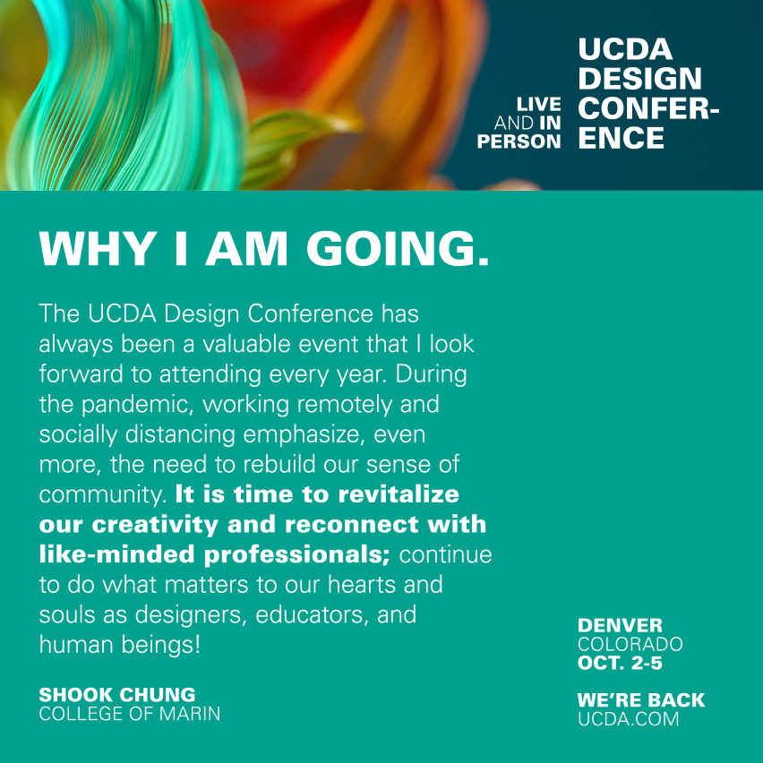 Every year, we look forward to connecting with our design community at the conference where we take an in-depth look at the issues and trends in design and communication communities, both in and out of educational institutions, and gain inspiration to spark our creativity and improve our collaborations. The UCDA Design Conference is an incredibly important event for UCDA and it’s one of our favorite ways to celebrate all of you. It will have main stage and keynote speakers, the annual UCDA Design Awards, and the UCDA Foundation’s auction.